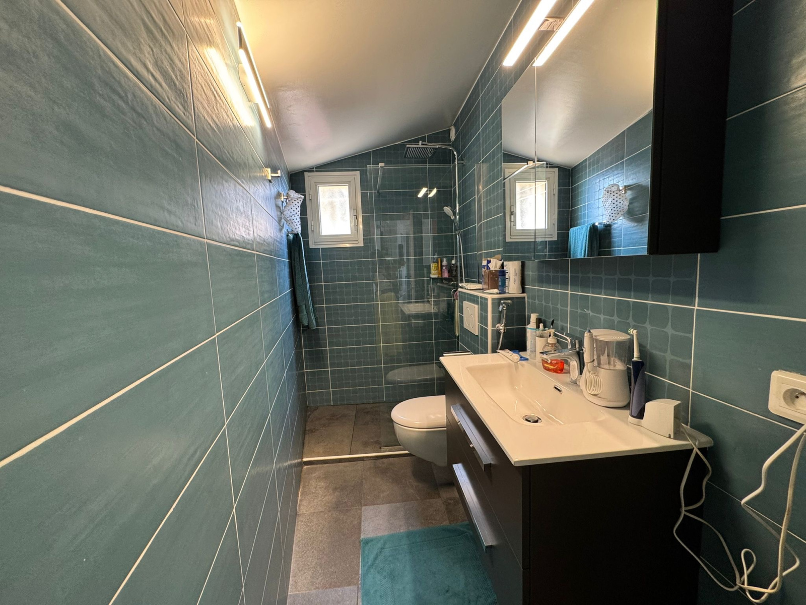 La villa est actuellement divisée en deux appartements avec accès individualisés.